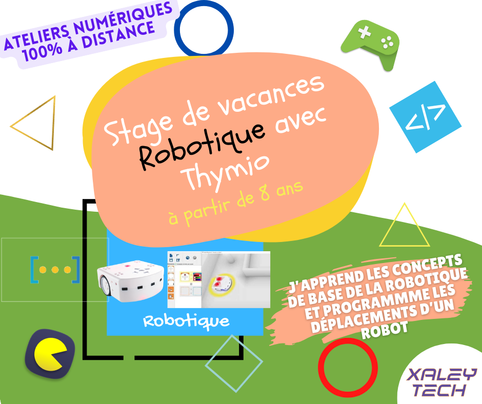 Ce stage de vacances est réservé aux enfants à partir de 8 ans qui désire s’initier à la robotique. Durant une semaine ils apprennent les bases de la robotique, à identifier les différents composants d’un robot et à programmer les mouvements de base d’un robot. Ils utiliseront des simulateurs en ligne du robot éducatif programmable Thymio.